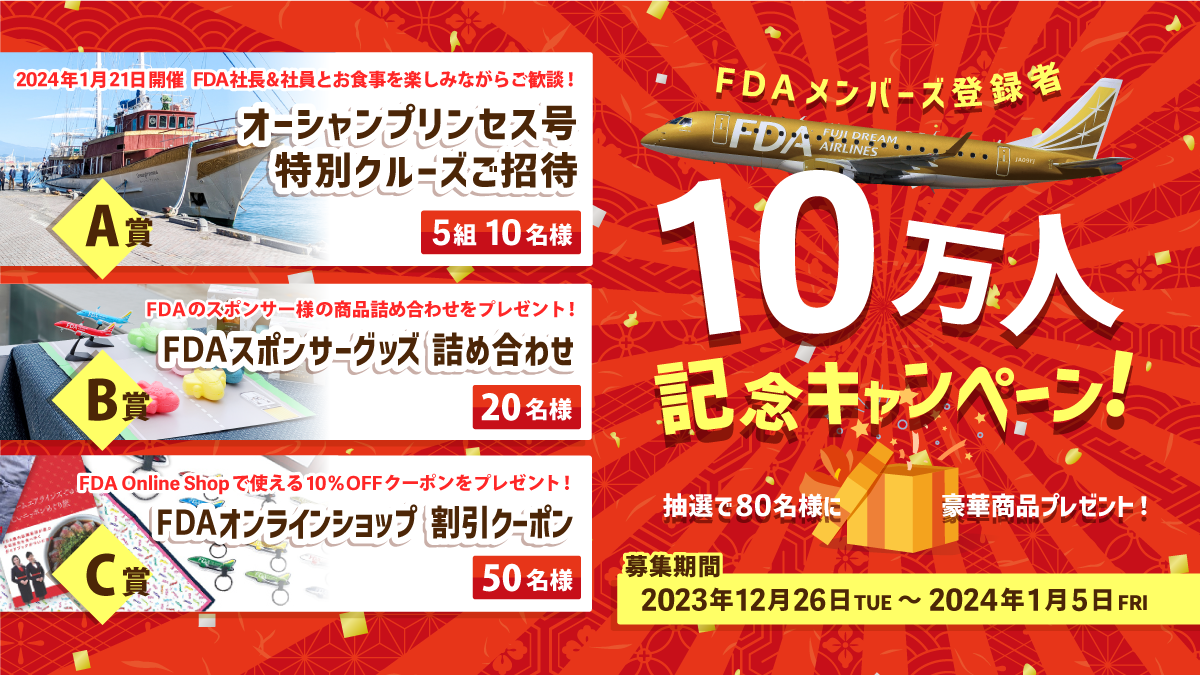 登録会員数10万人を記念し、「FDAメンバーズ登録者10万人記念キャンペーン」を下記の要領で実施させていただきます