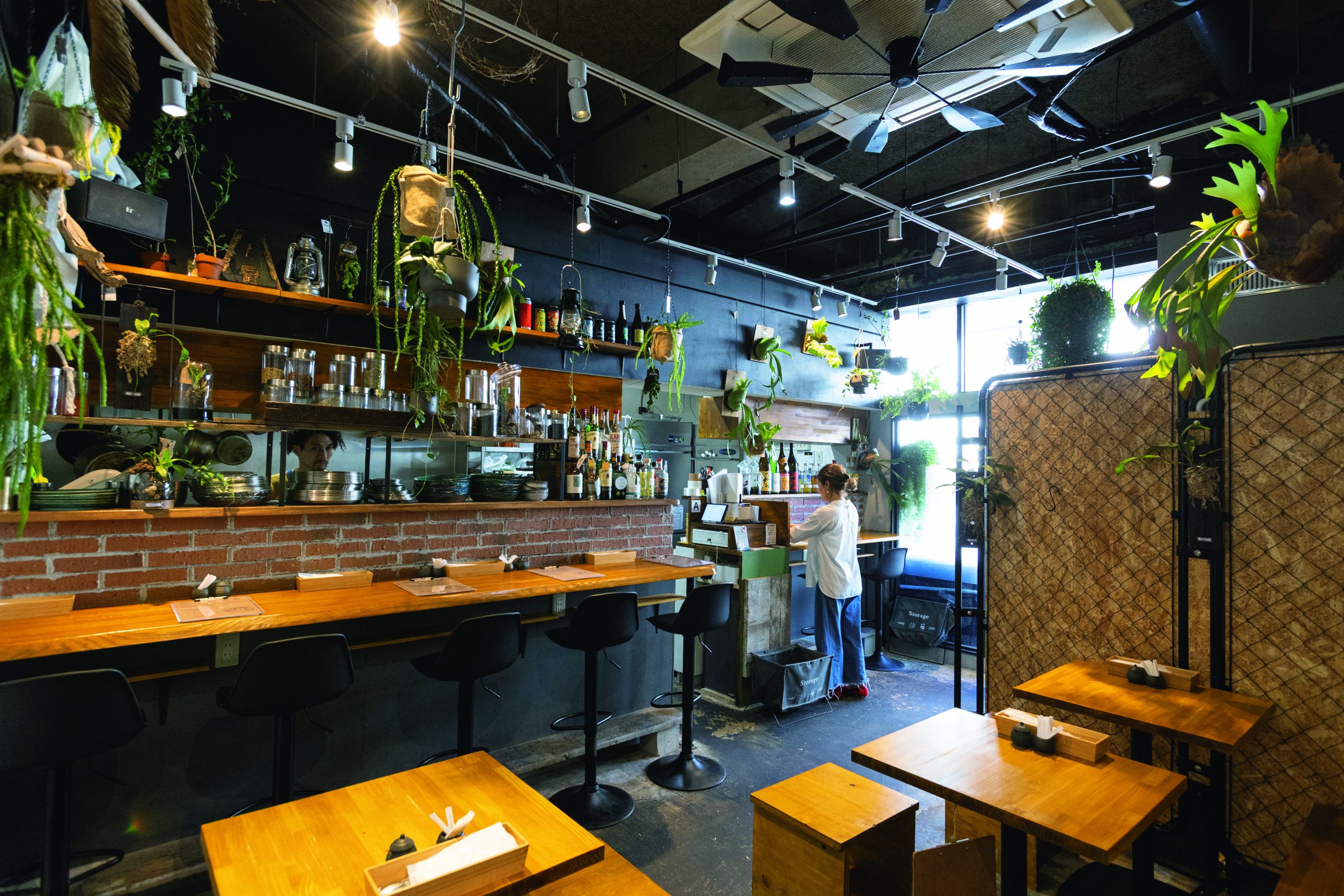 路地に入って角を曲がると、やさしいスパイスの香りがお目当ての店に近いことを教えてくれた。『ANDY那古野』の店構えは、ちょっとダンディなカフェ風。ドアを開ければ、棚にずらりと並ぶスパイスの瓶やお手製の「スパイスとフルーツの漬け込み酒」に交じって、そこかしこに置かれたグリーンたちが夏の気分を盛り上げている。