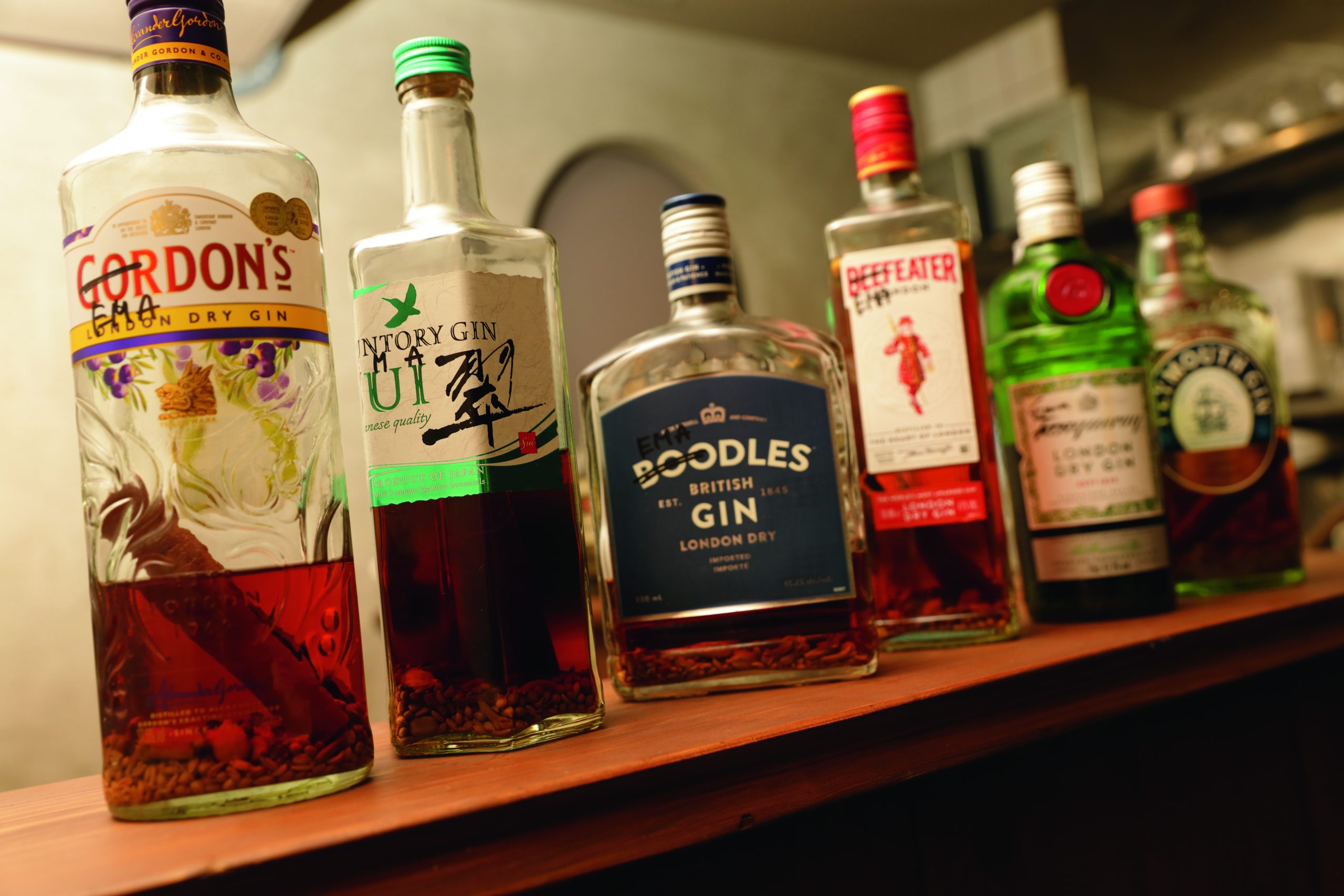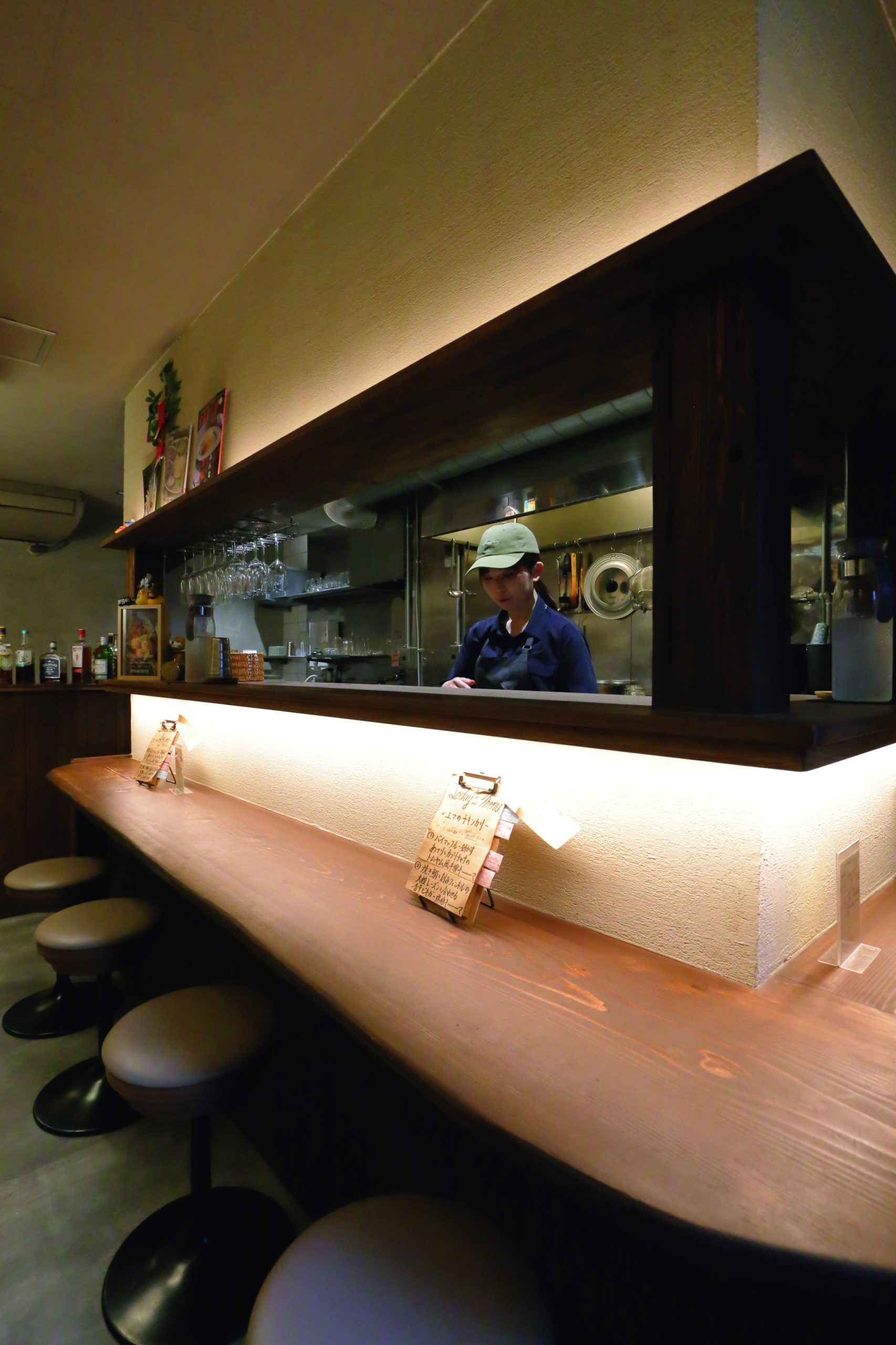 昼のみの営業ながら、テーブル席の前にはお酒のボトルがずらり。「エマスペシャル」なるスパイスを漬け込んだ一杯は、ジンやラム、ウォッカなどにそれぞれ相性のいいスパイスの香りを移したもの。ノンアルコールのドリンクも充実しているので、一緒に堪能しよう。