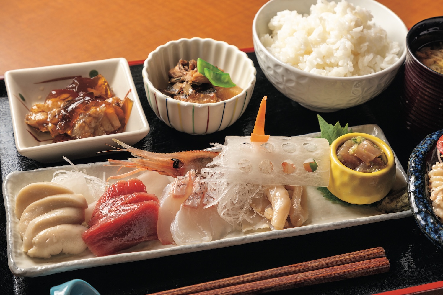 このほか炭火で焼く「焼き魚定食」、夜と同じクオリティー の刺身を5~7点も盛り込む贅沢な「刺身定食」も用意している。