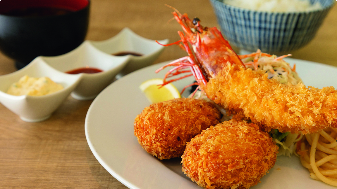 『ひらき』は、そんな日泰寺の参道沿いに昭和35年にオ ープン。美味しく手ごろな価格のメニューが豊富で、近隣の人々に愛されてきた。いつしか、一メニューだったカニクリームコロッケが店の看板となり、覚王山名物としても評判を集める存在に。現在は参道からひと筋西へ移転し、メニューも定食中心に一新しているが、カニクリームコロッケを求めてわざわざ店を訪れる客が後を絶たない人気ぶりだ。