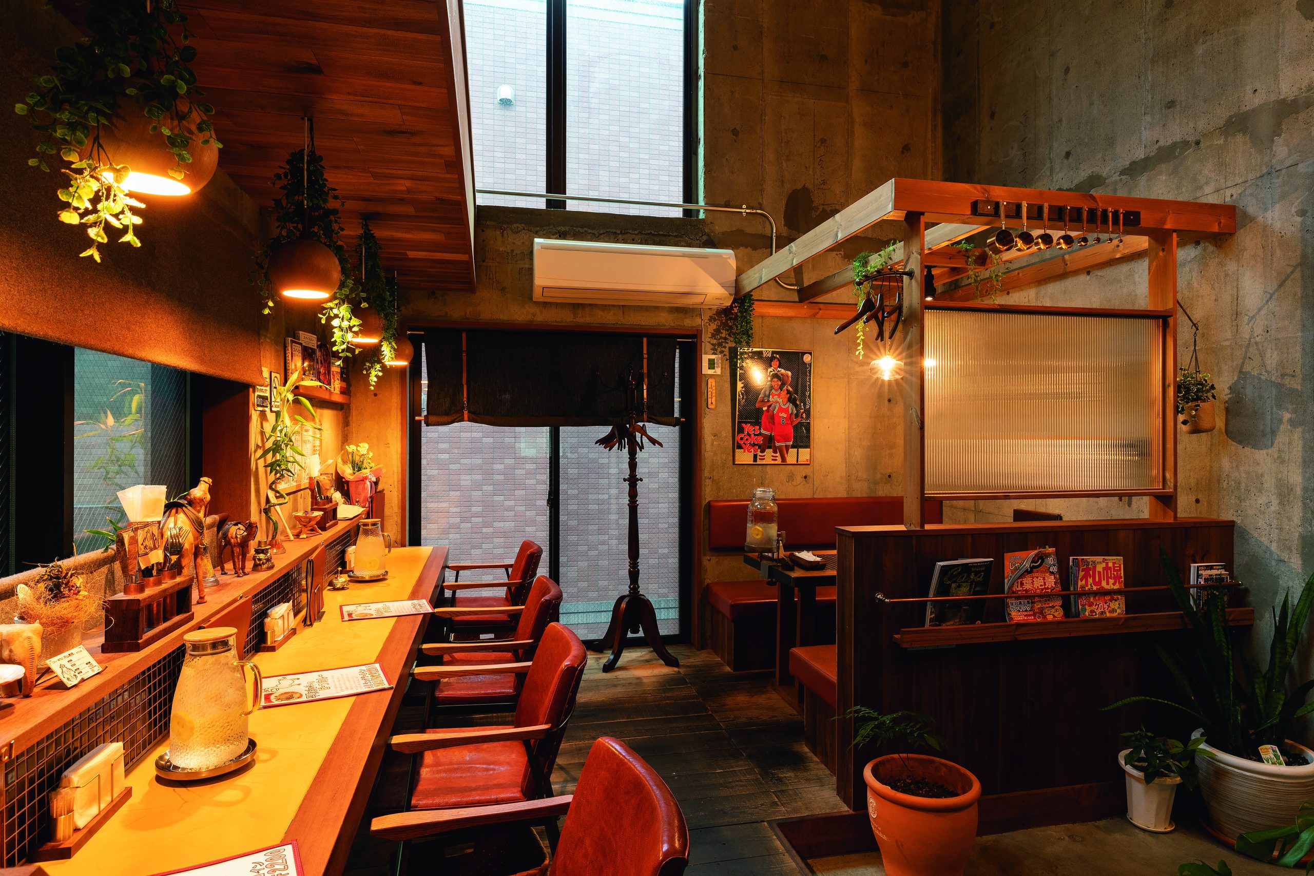 店内には、2階と3階にさまざまなタイプのテーブル席とカウンター席を用意している。地下鉄東西線「西28丁目」駅から徒歩数分の立地ながら、住宅街の奥にひっそりとたたずむ隠れ家のような雰囲気もまた、魅力のひとつだ。