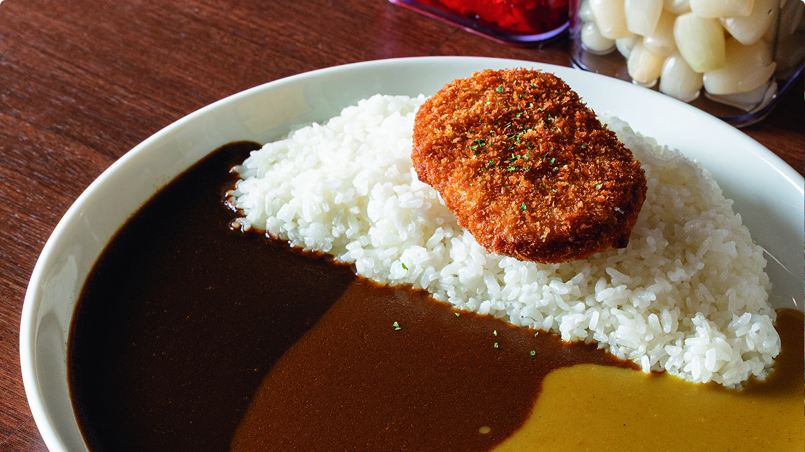 味の決め手となるのは「ボーンブロス」と呼ばれる鶏ガラスープで、現在はこの出汁をベースに新開発した「スペ シャルカレー」「黒カレー」の3種類を提供中。3つのルーを一度に楽しめる「あいがけカレー」は見た目も美しく、印象的な旅の思い出になる。