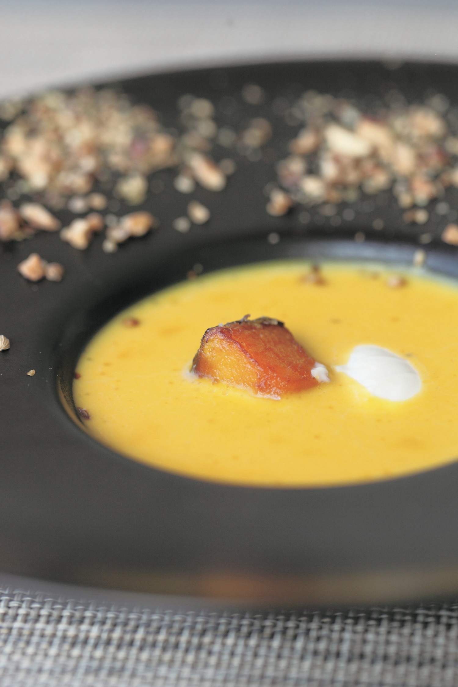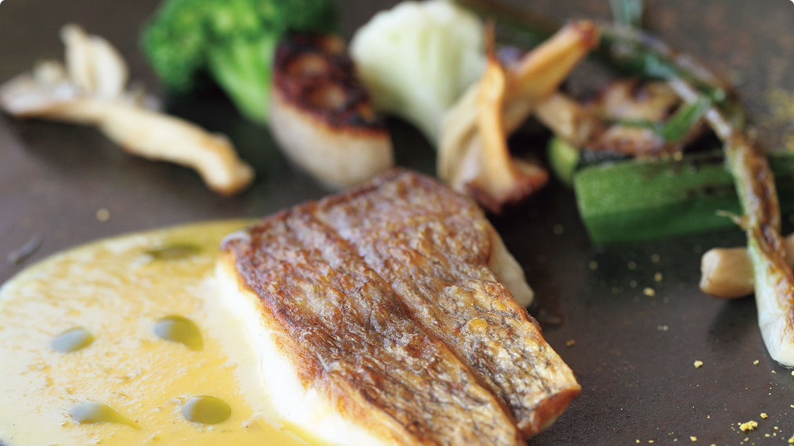ここで供される料理は、有名店で経験を積んだシェフのこだわりがつまった、フレンチがベースのアレンジ料理だ。魚は駿河湾など地のもの、近隣で採れた旬の野菜をふんだんに使っている。敷地内の菜園で育てたエディブルフラワーが彩りを添える。 おすすめは「’Ulalenaランチコース」。前菜からデザートまで、眼前の景色に負けない美しさで供される。