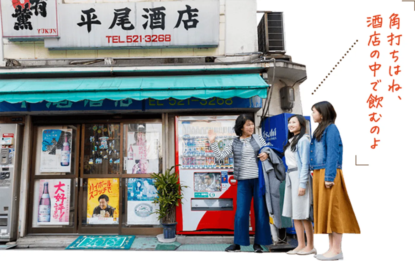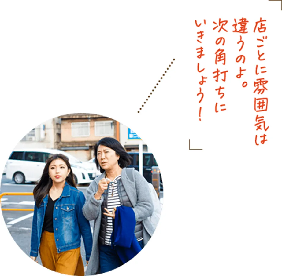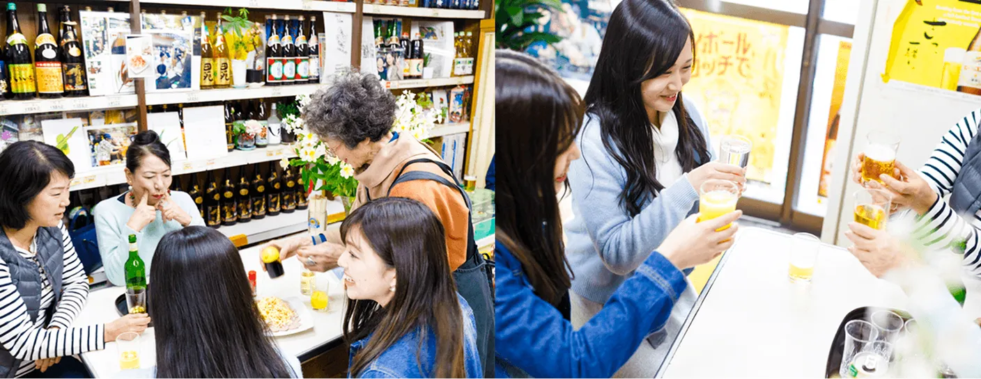 ほろ酔い気分になり日が傾きはじめたころ「お店ごとに雰囲気は違うのよ。次の角打ちにいきましょう」と誘われて歩き出します。