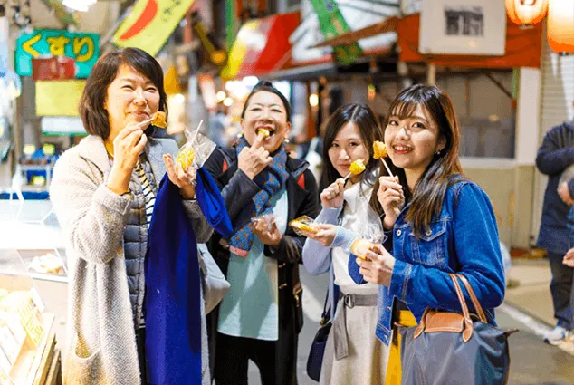 小倉城を見学した後は、いま話題を呼んでいる『角(かく)打ち』を体験。地元の方々やサラリーマンだけでなく、最近は口コミで観光客や女性にも人気が高まっているそうです。