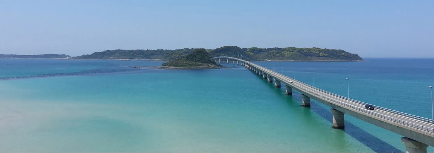 ビューンと、島までのびる気持ちの良い角島大橋は約2km。澄みわたる青空、コバルトブルーの海と白い砂浜。絵画のような景色をドライブで駆け抜れば、心は爽快感で満タンに。レンタルサイクルでも橋を渡ることができるので、渋滞がピークとなる夏場には特におすすめします。