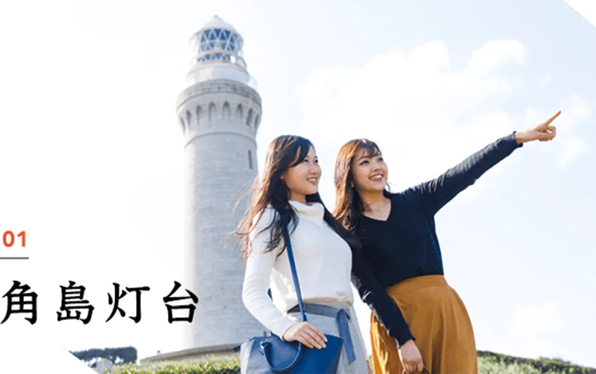真っ白な石造りの角島灯台は、明治4年から140年経った今も現役。灯台から眺める海の美しさもまた格別です。“恋する灯台”として、カップルも多く訪れるとか。眼下には日本海の絶景が広がります。ここから眺める夕日もまた別格。