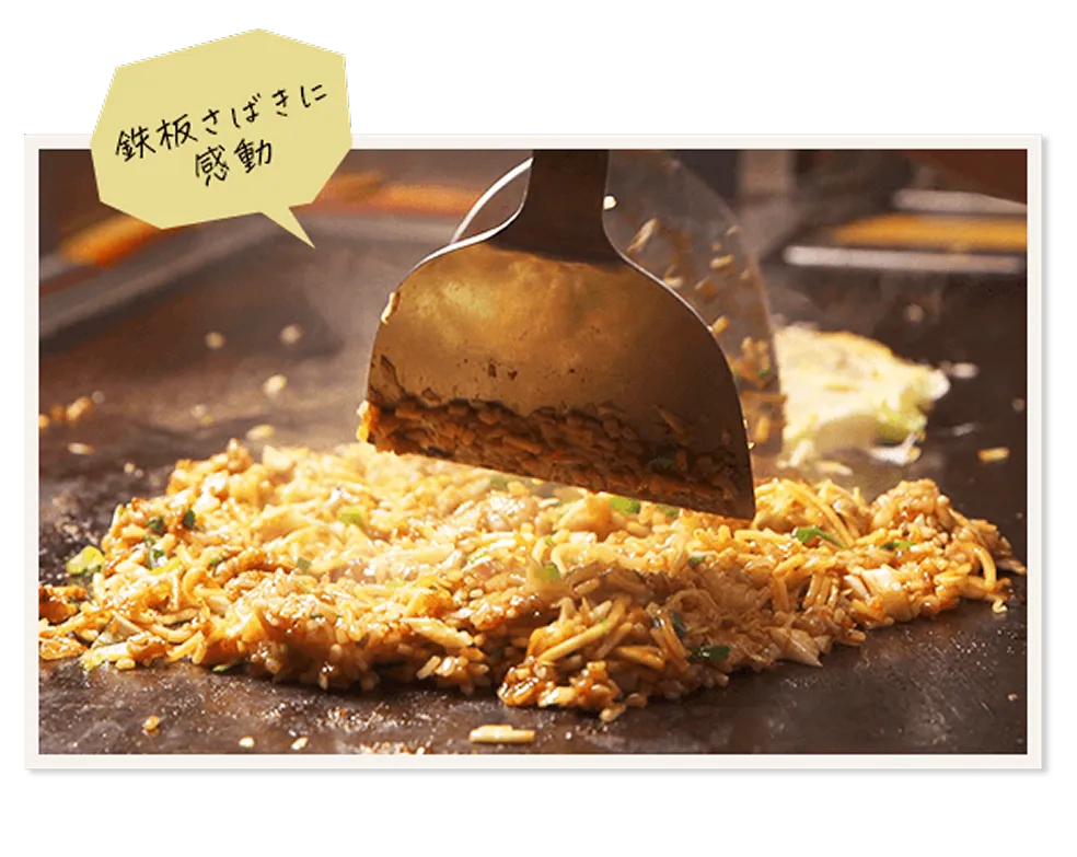 三宮『東門街』の中間辺り、気取らない雰囲気が魅力の鉄板料理のお店。神戸のご当地グルメ「そばめし」に、外はカリッ、中はふんわりの「油かす焼」、お好み焼きをブラックペッパーで食べる「きぬやき」など、食材や焼き方にこだわったメニューはどれも絶品!