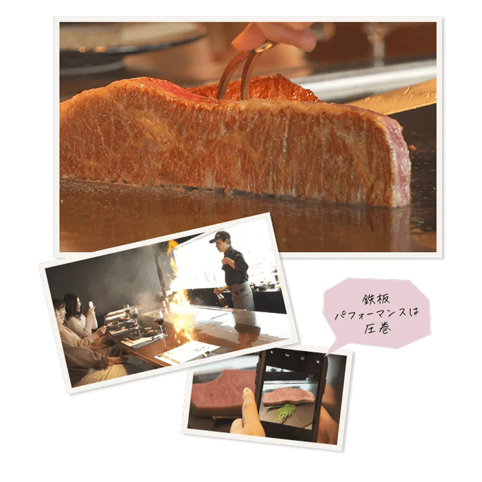 シェフ厳選の神戸牛から、ロブスターや鮑などの新鮮な魚介類まで、こだわりの食材を目の前の鉄板で焼き上げ、出来立てを提供してくれます。味だけでなく、鉄板の上で披露されるパフォーマンスと料理人の愉快なトークも魅力の一つ。笑いと感動を味わって。