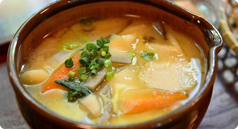 その地方が育んできた味を知るには、まずは汁物を召し上がれ。だごは熊本弁でだんごのこと。地元産の季節野菜やお肉をたっぷり入れ、小麦粉で練った一口サイズの平たい団子を加えるのが特徴的です。阿蘇地方は味噌汁風で根菜類やしいたけなど、有明海沿岸地方はすまし汁風で貝類や鶏肉と、具材も地域の特色が感じられます。