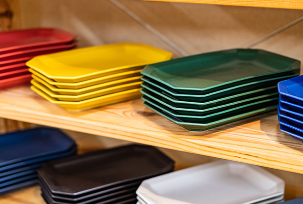 まずは波佐見焼の商品が一堂に揃う「くらわん館」へ。伝統的な和食器からモダンなものまで