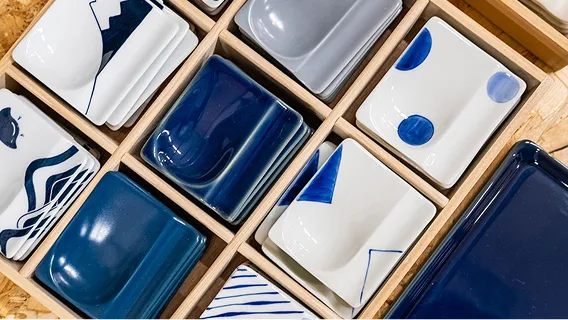 まずは波佐見焼の商品が一堂に揃う「くらわん館」へ。伝統的な和食器からモダンなものまで