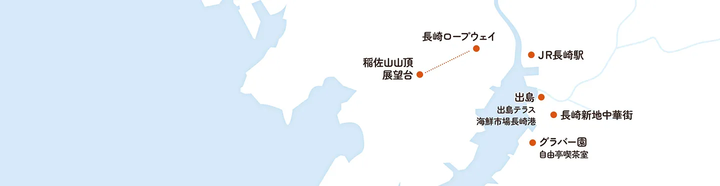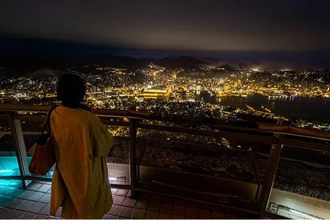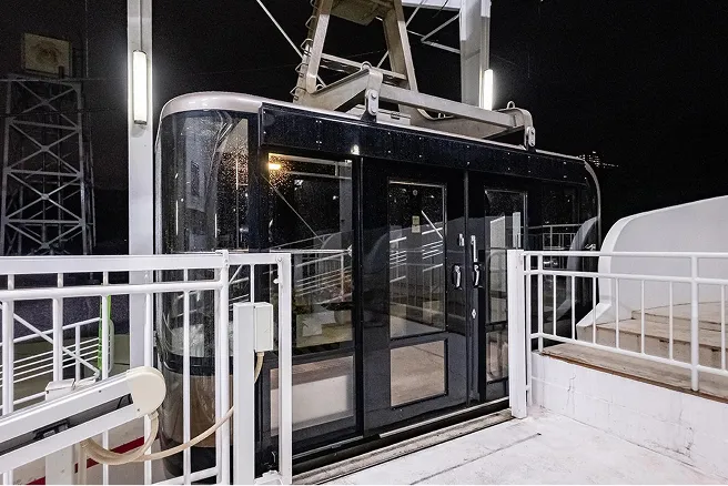 稲佐山山頂と淵神社駅を結ぶ「長崎ロープウェイ」。全面がガラス張りになったスタイリッシュなゴンドラなので、全方位の景色を望めるのがうれしいと評判です。ロープウェイからの夕景も人気。