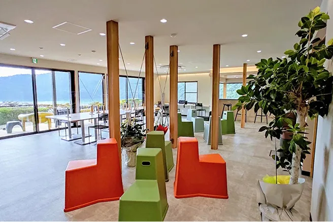 雲仙温泉のおしどりの池を見渡せる高台に、コワーキングスペース「H.U.B雲仙」が2021年にオープン。絶景を望みつつ作業をし、夜はゆったり温泉へ入る、そんな最高の贅沢が味わえます。