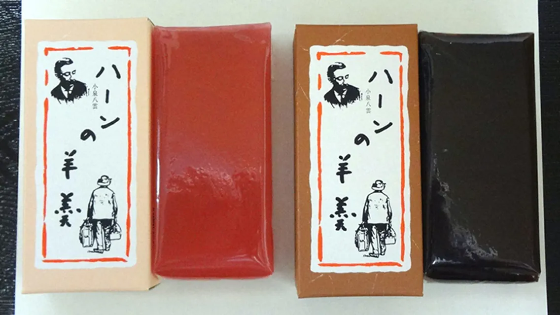 江戸・宝暦年間(1751年~1764年)創業の老舗和菓子店「一力堂」。甘党の八雲に妻セツが松江を離れたあとも取り寄せていたほどお気に入りだった羊羹で、「小倉羊羹」と松江ではハレの日に出される「紅羊羹」の2種類があります。