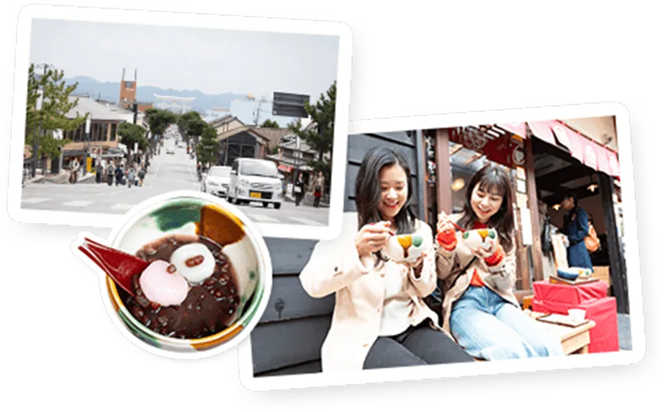 약 700m의 신몬 거리에는 단맛집이나 메밀 가게 등의 음식점 외에 기념품점 등도 처마를 늘리고 있으며, 이즈모 소바나 이즈모 젠자이 등 노포의 맛을 즐길 수 있습니다.