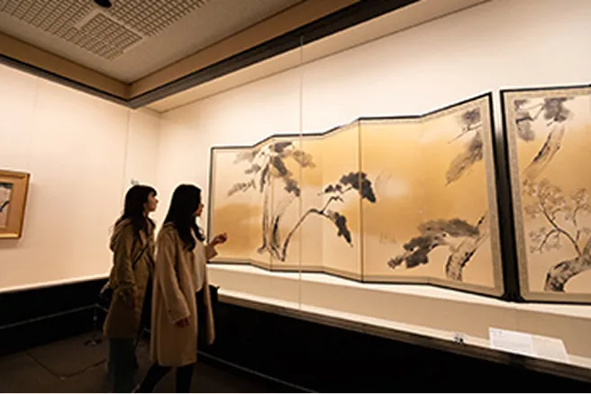 주정의 고산수정, 백사청송정 등 약 5만평의 다양한 일본정원이 있어 그 자연미는 마치 회화처럼. 계절마다 매력있는 표정을 보여줍니다. 요코야마 다이칸을 비롯한 근대부터 현대의 일본화나 키타오지 로야마인의 도예 등의 명품도 주목입니다.