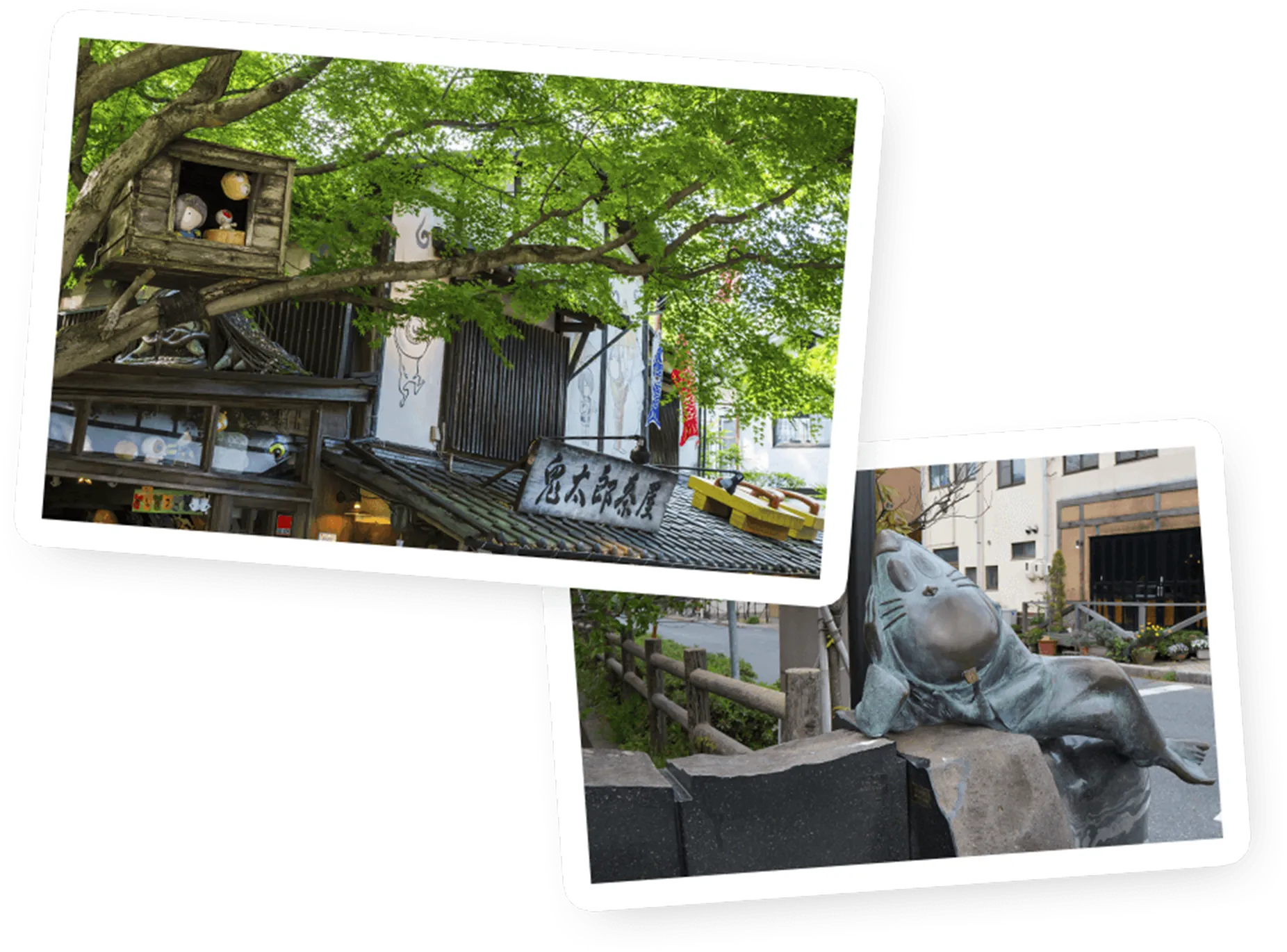 약 800m의 길을 따라 요괴 브론즈상이. 요괴를 테마로 한 숍이나 시설도 다수 있어, 이 세계 세계를 만끽할 수 있습니다.