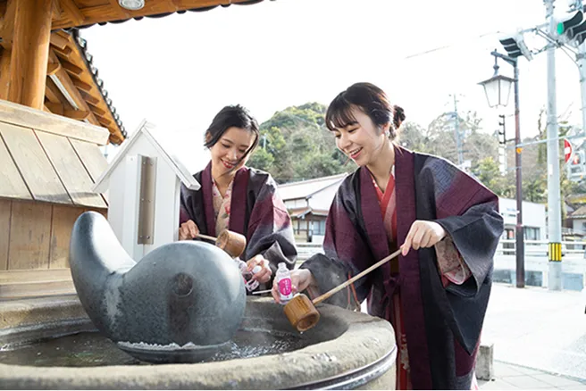 소원돌이 유명한 타마사쿠유 신사나 거대한 구다마가 있는 구타마바시, 피부 미용의 온천을 가져갈 수 있는 유약사 광장 등, 사진을 찍고 싶어지는 명소가 가득합니다. 온천 마을을 만끽한 후에는 효능이 가득한 온천으로 느긋하게.