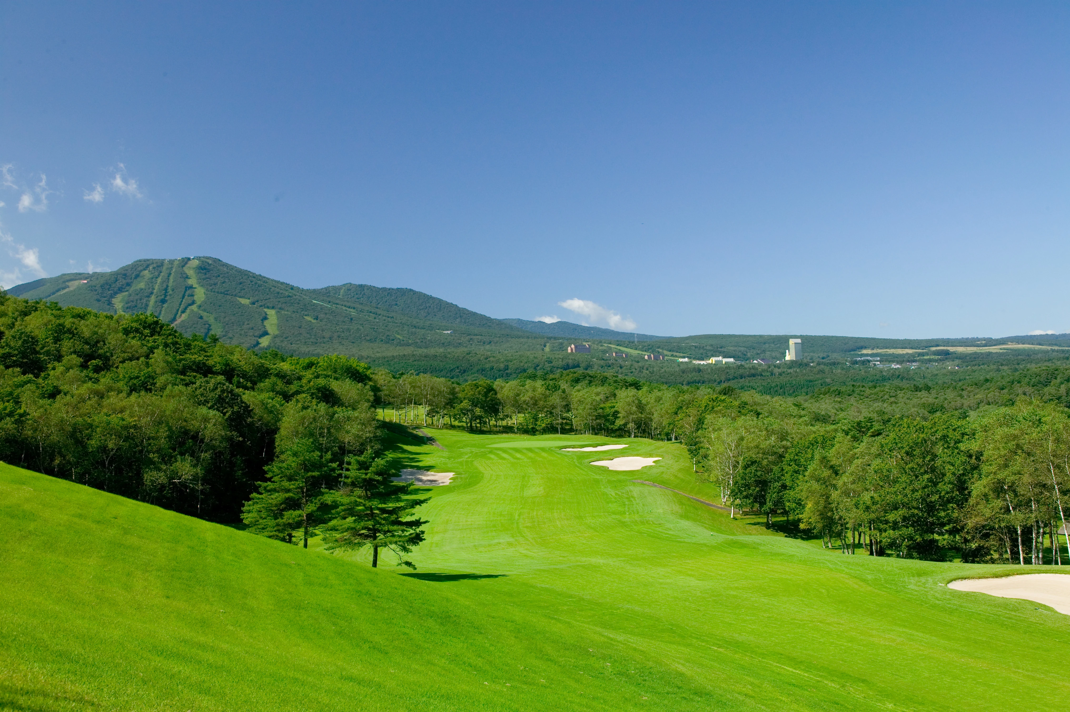 安比高原ゴルフクラブ白樺林と広大な高原地形に展開する36ホールの巨大リゾートコースです。標高600mのため、夏でも比較的涼しく快適にプレイが楽しめます。