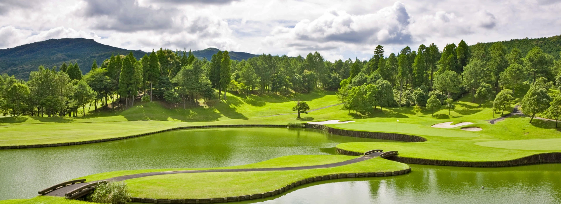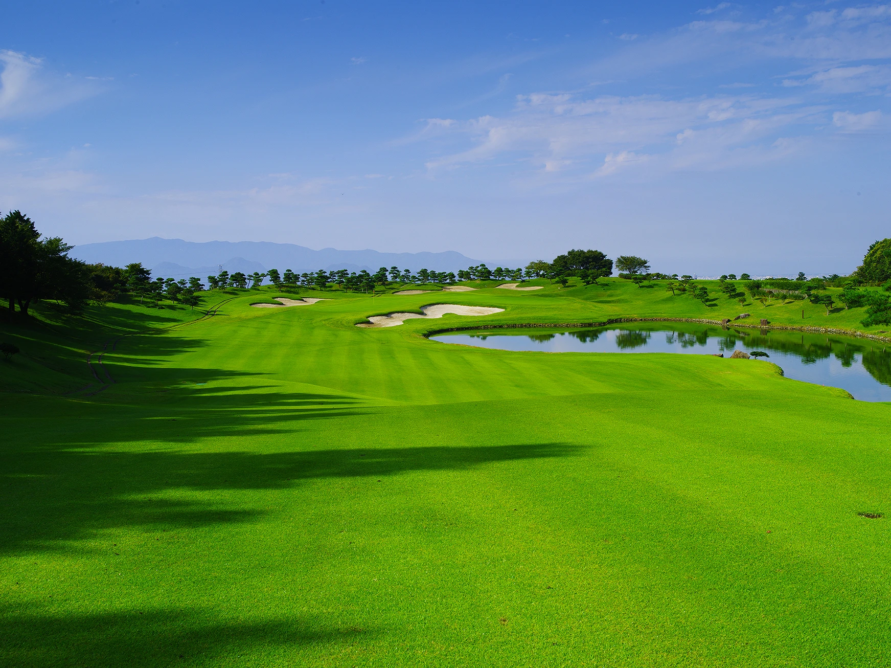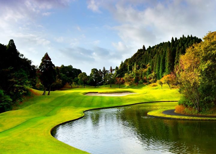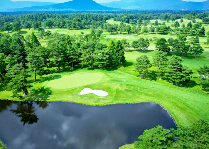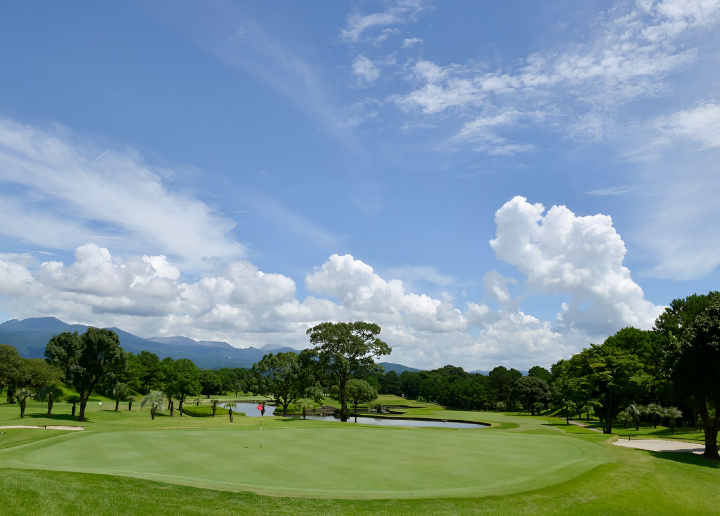 くまもと中央カントリークラブ上田治設計の大阿蘇や雲仙岳に向かってショットできる、本格派チャンピオンコースです。コースレートは九州トップクラス。難度の高いプレイが楽しめます。