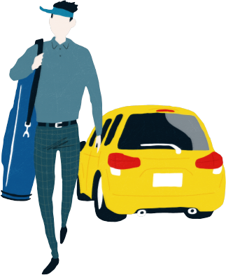 レンタカーでゴルフ場へGO