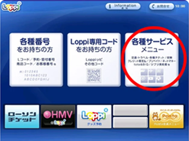 (1)「各種サービスメニュー」をタッチ