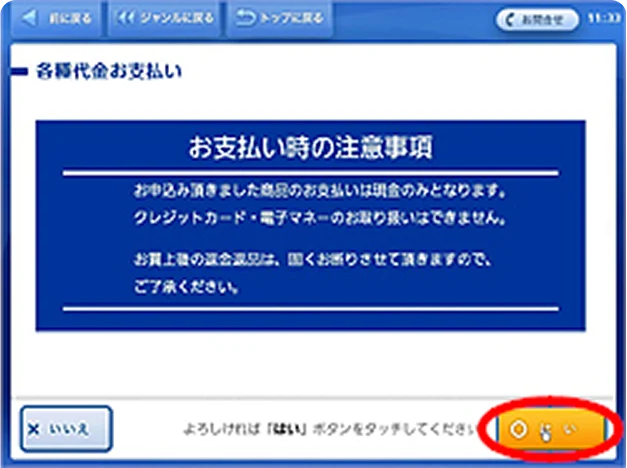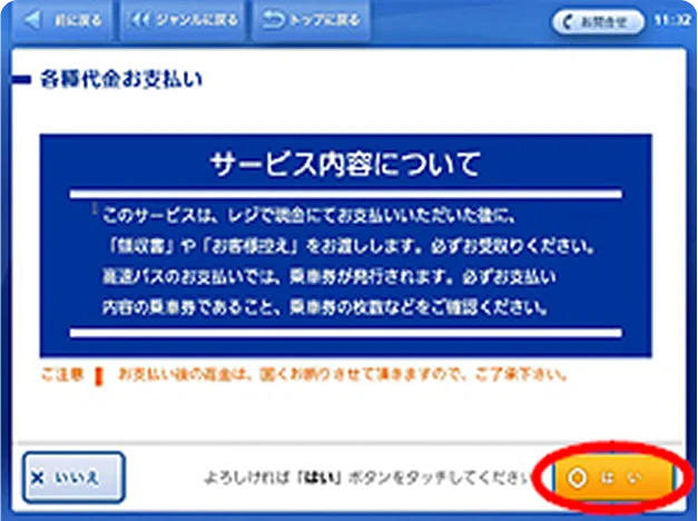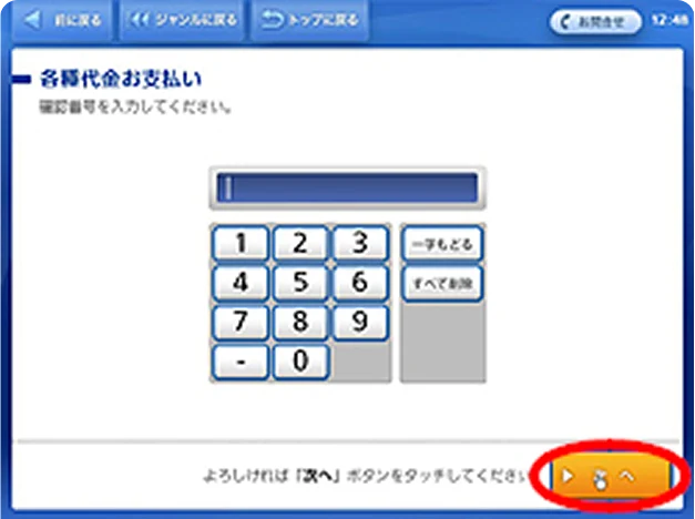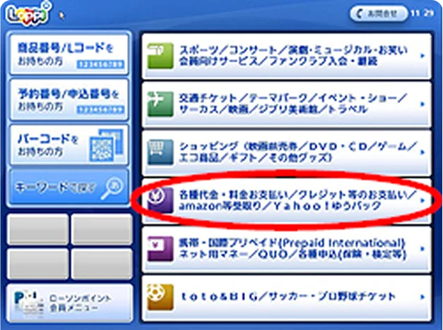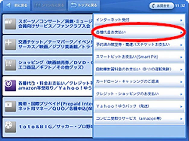(3)「各種代金お支払い」をタッチ