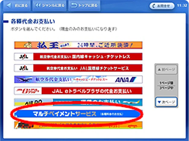 (4)「マルチペイメントサービス」をタッチ