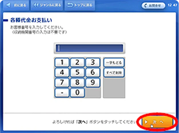 (6)「お客様番号」を入力し、「次へ」をタッチ