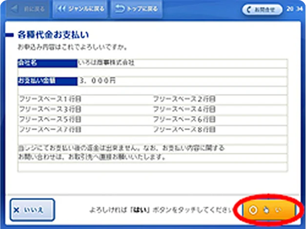 (5)内容を確認し、よろしければ「はい」をタッチ