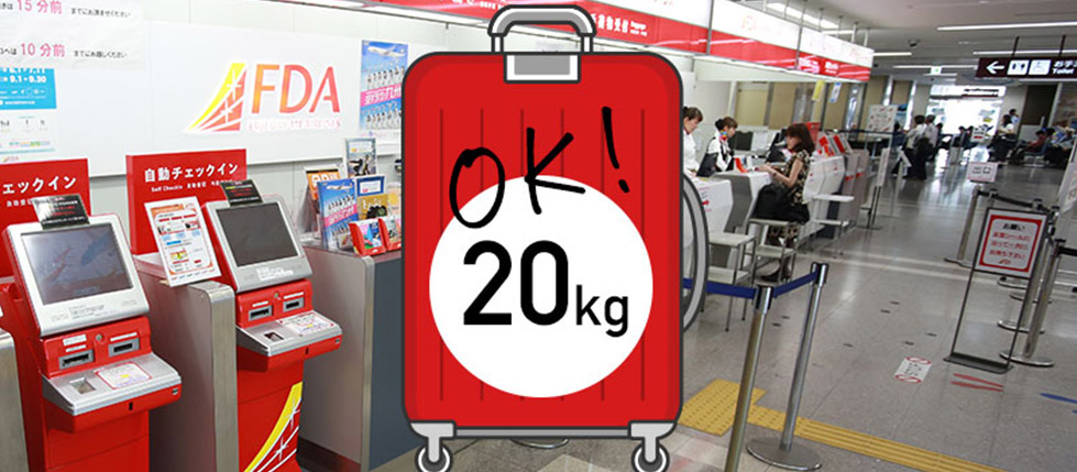 FDAでは、お一人様あたり50cm×60cm×120cm以内、合計20kgまで個数制限なしで無料でお預かりいたします。