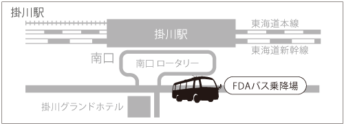 - 掛川駅発:FDA出発便の30分前~95分前にバス空港到着